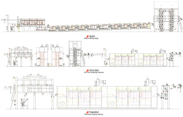 It is applied to open width form cotton, linen & their blends, Dyeing through disperse, reactive, vat dyes and etc. continuously and stable. Cotton and blends, Apparel fabrics including yarn dyed fabric, home-textile fabrics and etc.