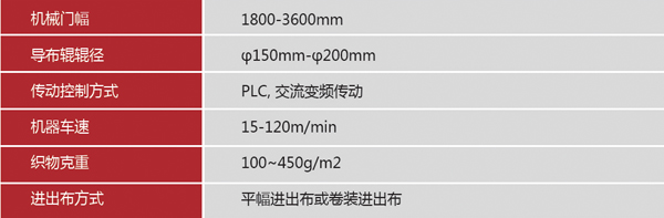 本机供棉、涤、麻及混纺织物进行平幅连续式退浆、煮练、漂白、使织物具有良好的毛效、白度,为产品后道工序中的染色、印花的质量提供保证。