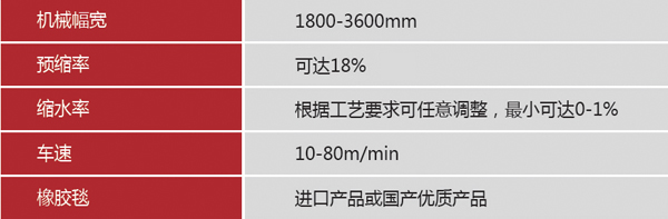 - 先进的工艺性:首屈一指18%预缩率的强大预缩能力,轻松使织物下机缩水率稳定在1%左右
